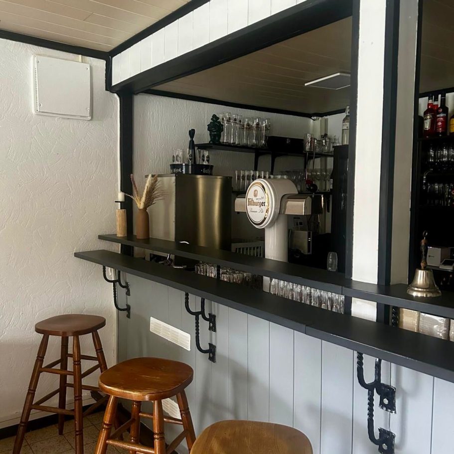 Der Thekenbereich befindet sich ebenfalls im Stübchen und bildet das Herzstück der Gaststätte. Hier laden wir euch herzlich dazu ein, bei einem kühlen Getränk, in angenehmer Gesellschaft, nette Gespräche zu führen.